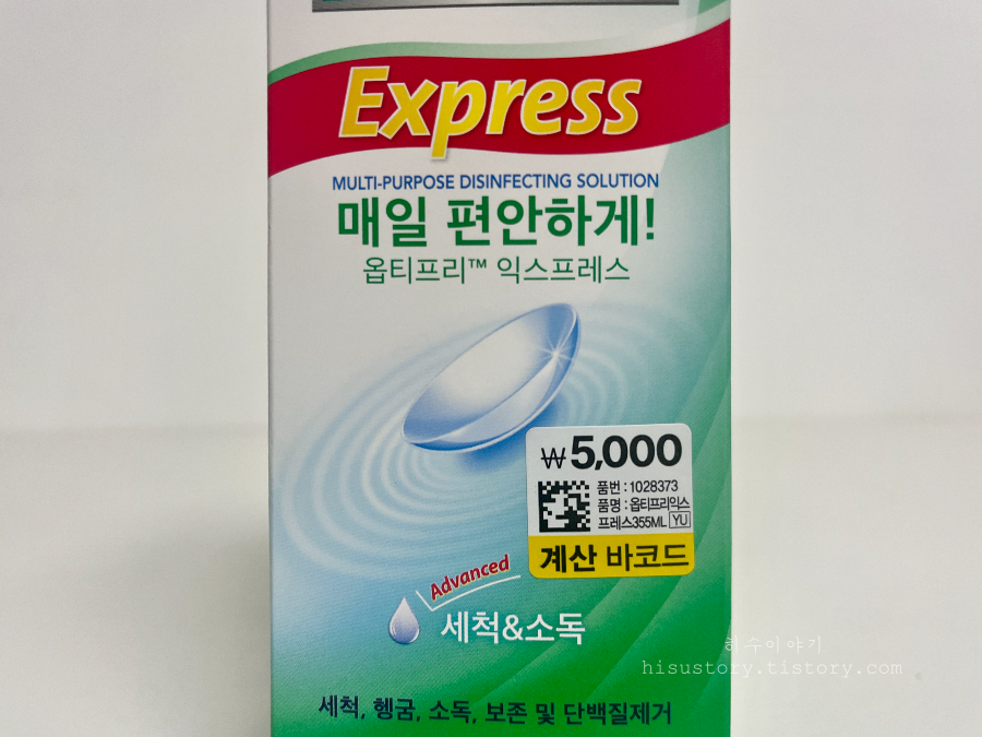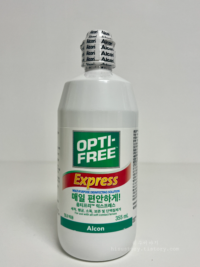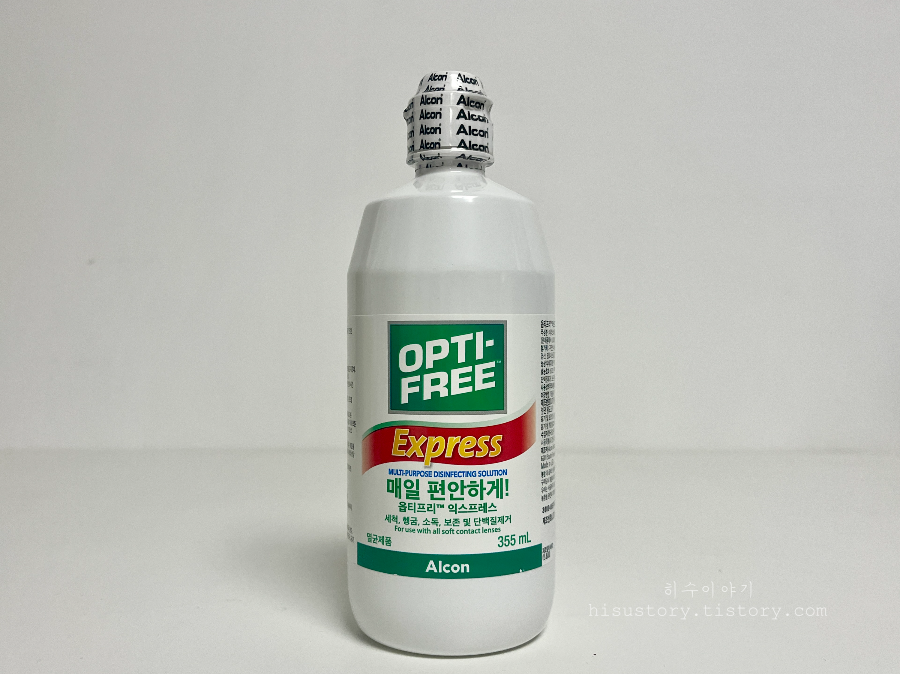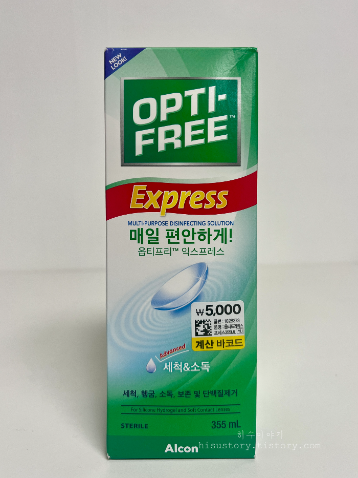 이번에 구매한 옵티프리 익스프레스 제품은 단백질제거, 보존, 세정, 헹굼, 보관까지 한 번에 가능한 올인원 타입이고